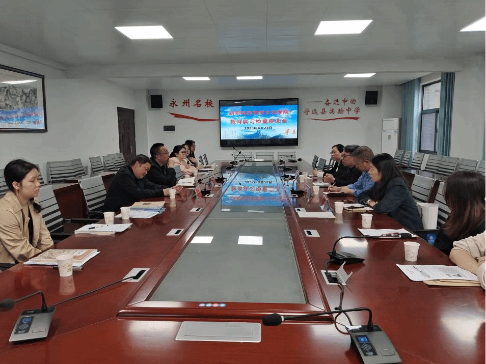 文法学院院长谷显明、副院长肖智成、中文系主任黄丽、学工办副主任王艺组成的检查小组,于2025年4月24日至25日先后走访宁远县实验中学、道县东洲学校、道县潇水学校,看望实习的公费师范生,与实习学校领导和指导老师、实习生开展座谈。实习学校领导对实习生工作表现给予充分肯定,并结合中学实际需求和教育发展趋势,从教学创新、学生沟通技巧、职业素养提升等方面,对人才方案修订提出了建设性意见。