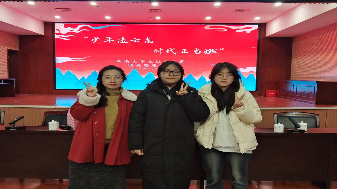 本网讯(通讯员 周佳 唐文倩 蒋梦娟 )12月15日下午,我校西山文学社获奖代表赴毛泽东文学院参加“少年凌云志,时代正当燃”湖南大学生征文颁奖典礼暨座谈会。