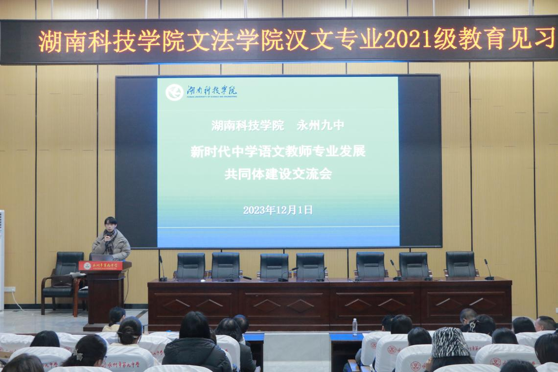 本网讯(通讯员:李惊宇 梁怡)12月1日,星空app官网文法学院2021级汉语言文学专业师生深入永州九中开展语文教音见习暨中学语文教师共同体建设交流活动,文法学院院长谷显明、副院长肖智成、语文教育研究中心主任刘忠华,永州九中副校长邓之,以及星空app官网2021级汉语言文学专业师生,永州九中语文教研组教师和学生代表200余人参加。