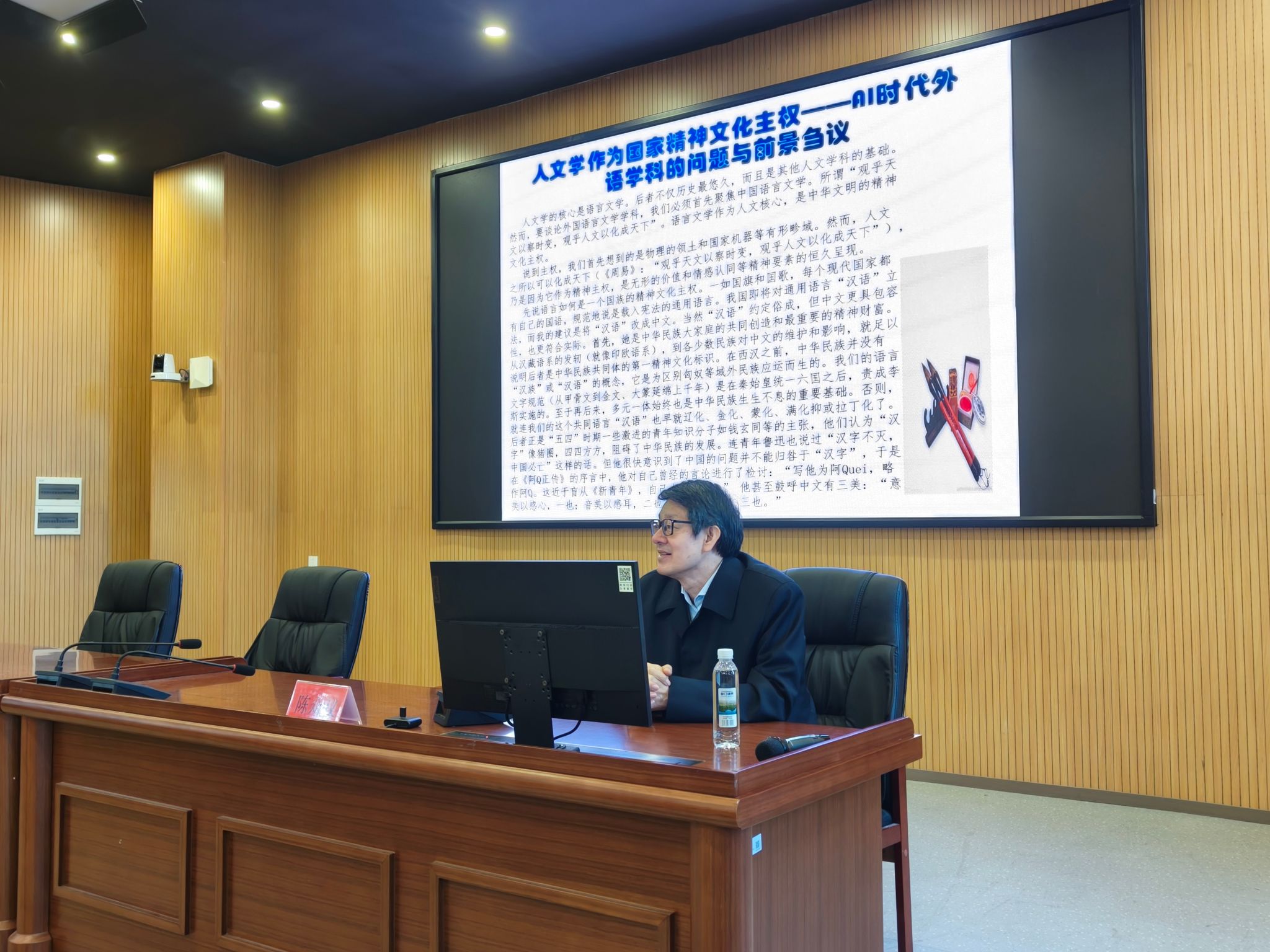 陈众议教授开篇便提出语言文学的重要性,他指出语言文学作为人文核心,是中华文明的精神文化主权。随后,陈教授用大量实例进一步阐述了语言如何是一个国家的精神文化主权及文学如何是发展的加法等问题。最后,陈教授着重强调了AI时代下中国的外国语言学学科存在的主要问题及其在中国的发展前景。