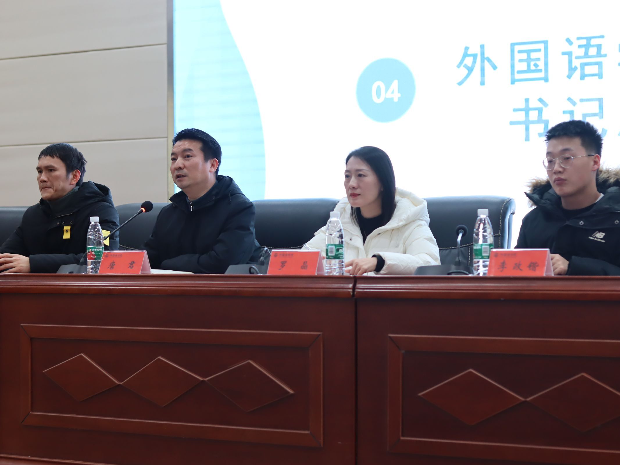 2023年12月19日下午,外国语学院在潇湘大讲堂召开2023年下期期末动员大会暨安全教育会。外国语学院党总支书记唐君、副书记罗晶以及学工办主任陈小峰出席会议,会议由团总支书记李政锴主持。