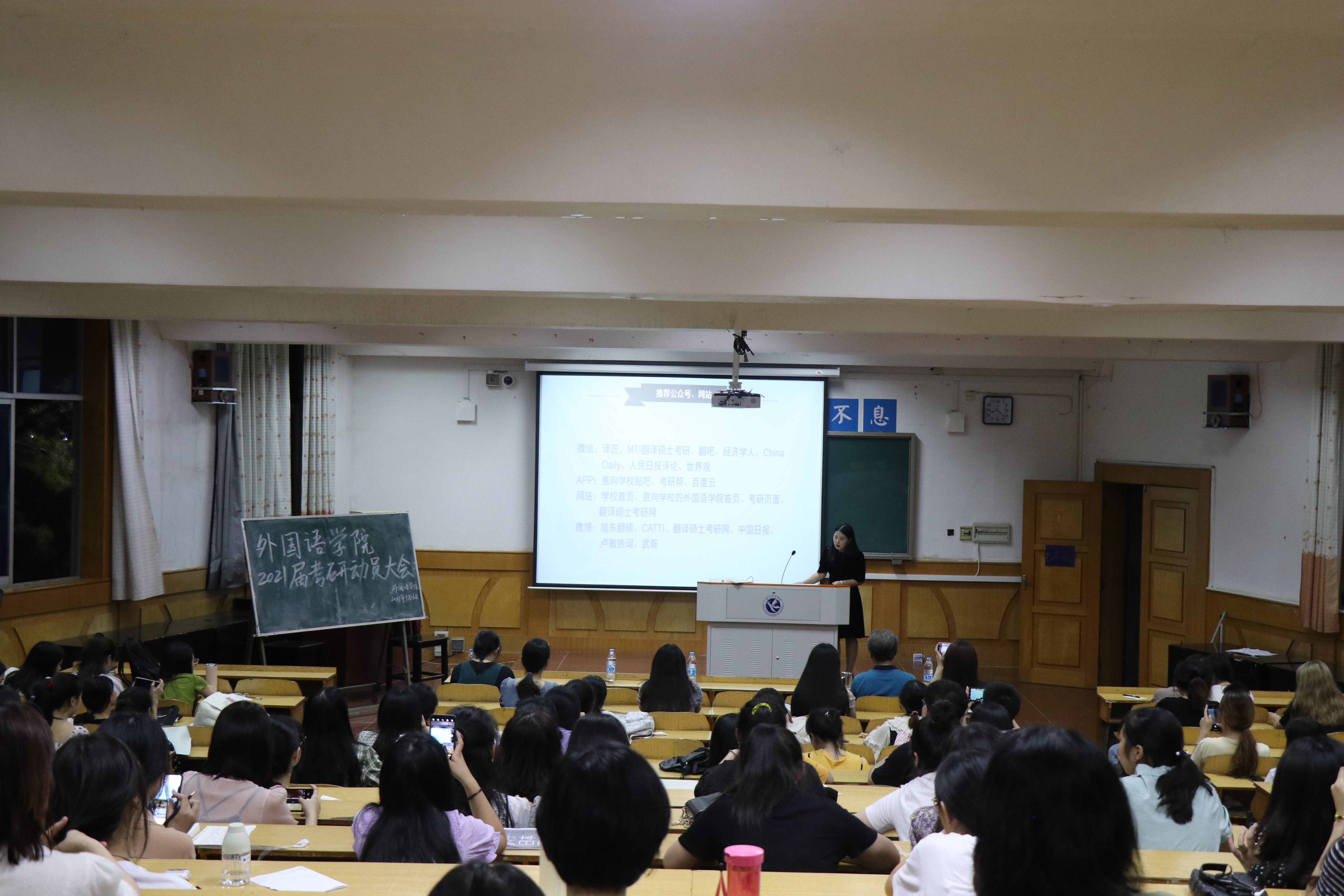(本网讯 通讯员 刘罗 田金凤 摄影 陈丽菲)916日,外国语学院在博雅楼西二举行了2021届考研动员大会,外国语学院长欧华恩、商英1701班班主任郭旭明、青年骨干教师黄警慧、潘缌缌,以及近120多名考研学子共同参会,大会由学工办副主任17级辅导员刘罗主持。