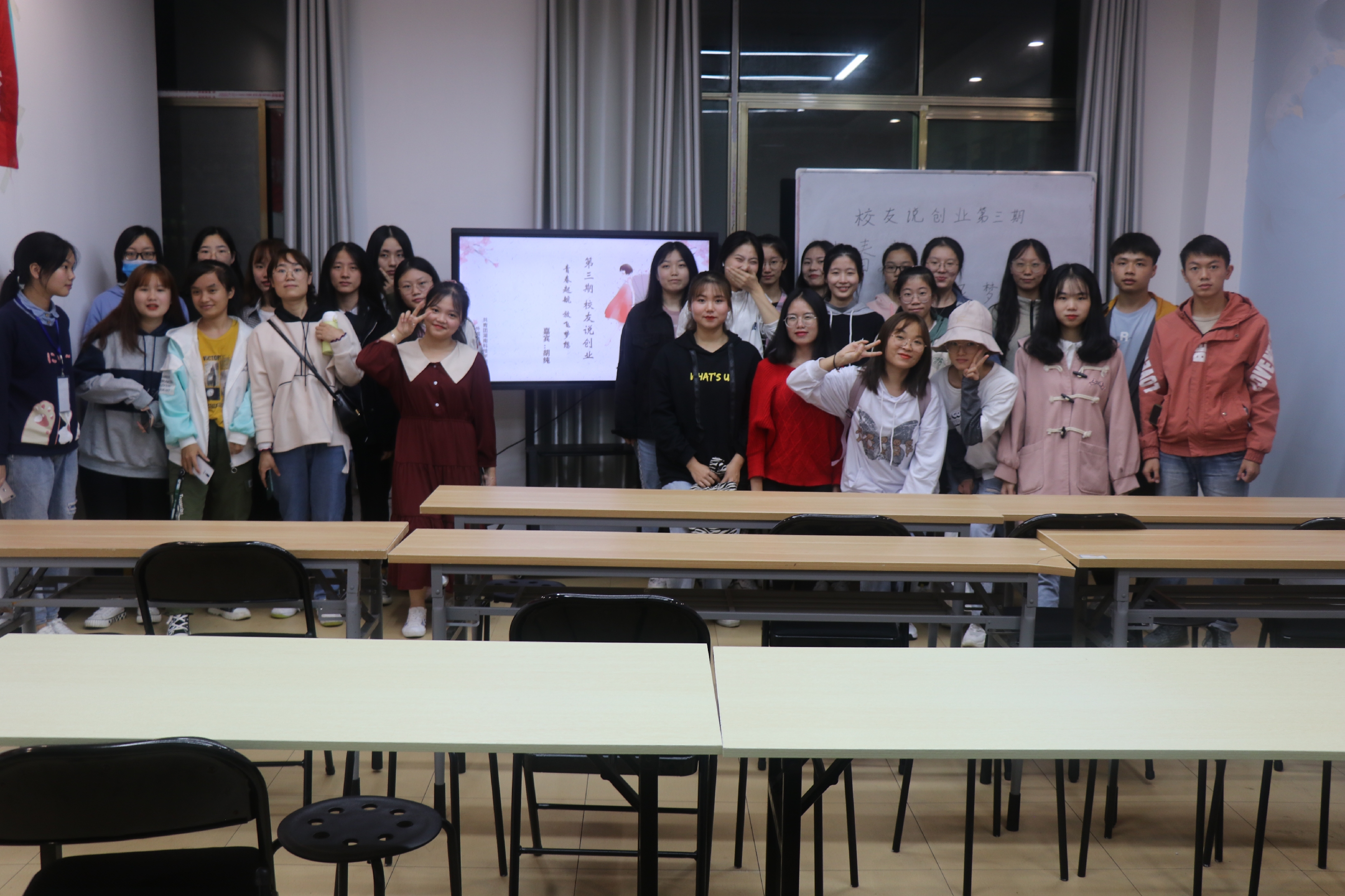 本网讯(通讯员 沈叶恒 刘罗 摄影 黄子幸)9月29日晚7:30,外国语学院于学校创新创业大楼317“聚师堂”校企合作工作室举办第三期以“青春启航,放飞梦想”为主题的《校友说创业》讲坛。外国语学院院长欧华恩教授、团委书记刘罗应邀参与此活动。本期的主讲人是05级优秀校友胡纯(曾任英语0505班副班长学生会外联部助理现任广州市荣耀电子科技有限公司总经理广州区域阿里巴巴特邀讲师)。共有180多名学子主动报名参与此次活动。