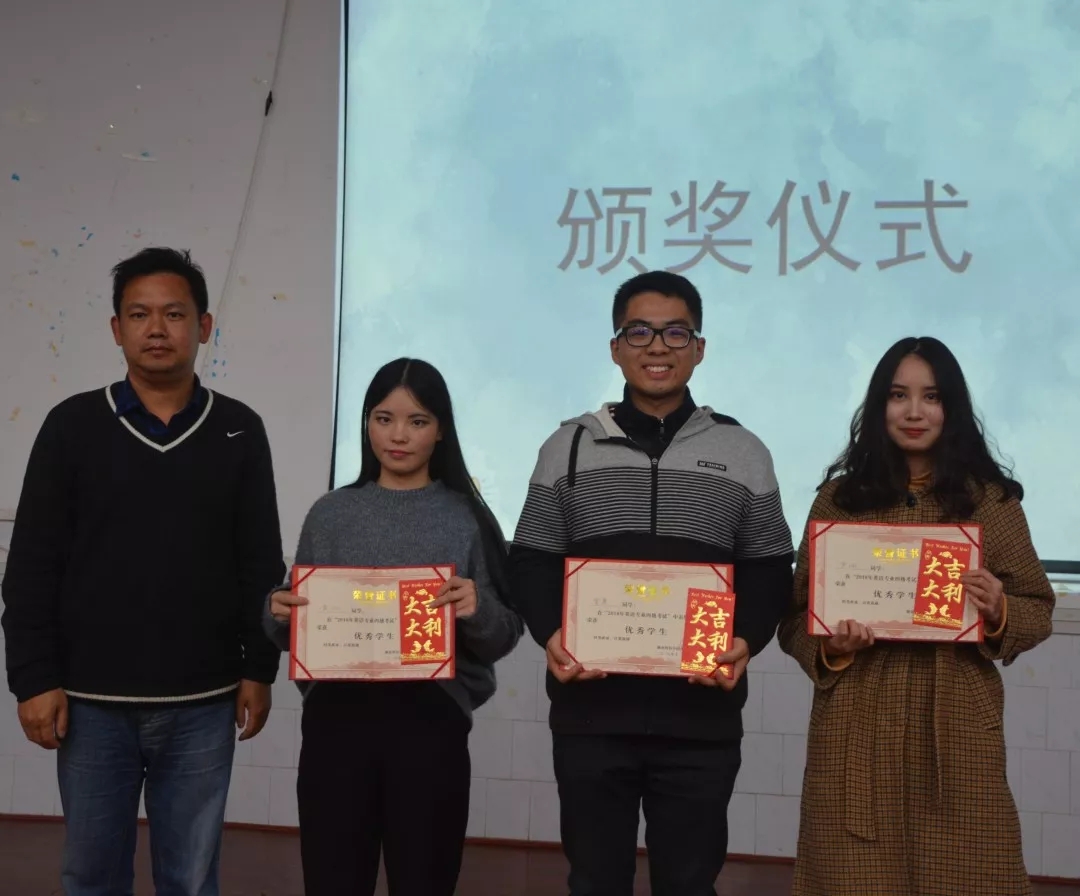 在随后的老师答疑环节,同学们就如何提高专注力、快速记住单词以及如何提高简答题得分等方面,提出自己的疑问,各位老师为同学们耐心解答。而后16级优秀学生代表向17级学弟学妹们分享了专四考试经验。欧华恩院长和雷树彬书记分别为专四优秀班级、专四优秀学员颁奖。