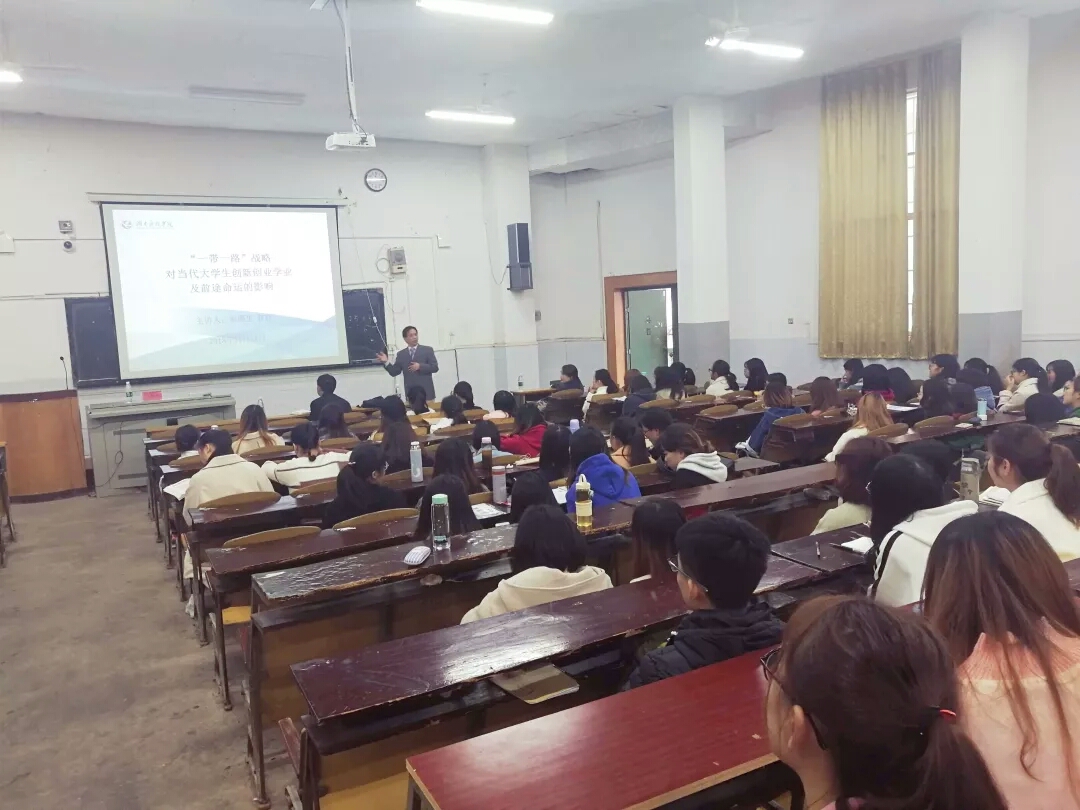 彭教授在讲座中详细讲解了“一带一路”战略对大学生创新创业的影响。他认为“一带一路”能够激发同学们创新创业的激情;让同学们树立“人类命运共同体”的新观念;并鼓励同学们以“一带一路”为主题,创新毕业论文,或者开展以“一带一路”为主题的相关竞赛,鼓励大家未来从事关于“一带一路”战略方面的工作。
