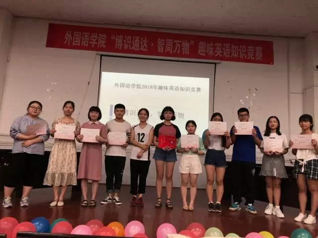 本网讯(通讯员  彭秋雨)为了在大学学习生活中创造浓厚的文化氛围,拓宽同学们的知识面,提高同学们的文学素养,外国语学院学生会文体部于5月26日晚在博雅楼东三举办了以“博识通达,智周万物”为主题的趣味英语知识竞赛。