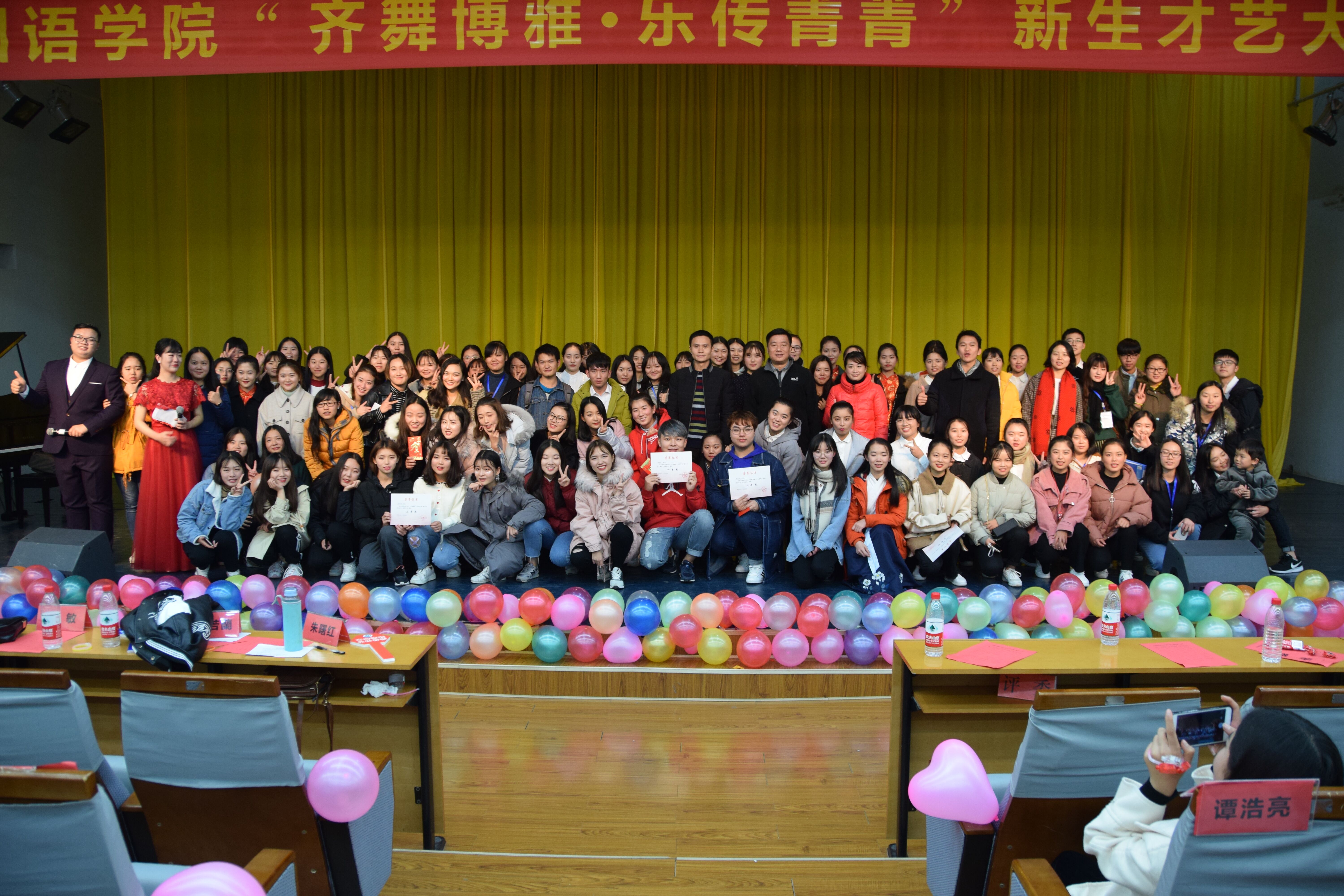 本网讯(通讯员 叶琴) 122日晚,外国语学院在尚美楼二楼演播厅举办“齐舞博雅,乐传菁菁”新生才艺大赛。学院党总支副书记、副院长王瑛,学工办主任胡赟,行政办主任盛荣,教务办主任郭莉芝出席观看大赛。17级班主任、教师代表及全体学生齐聚现场为选手加油喝彩。