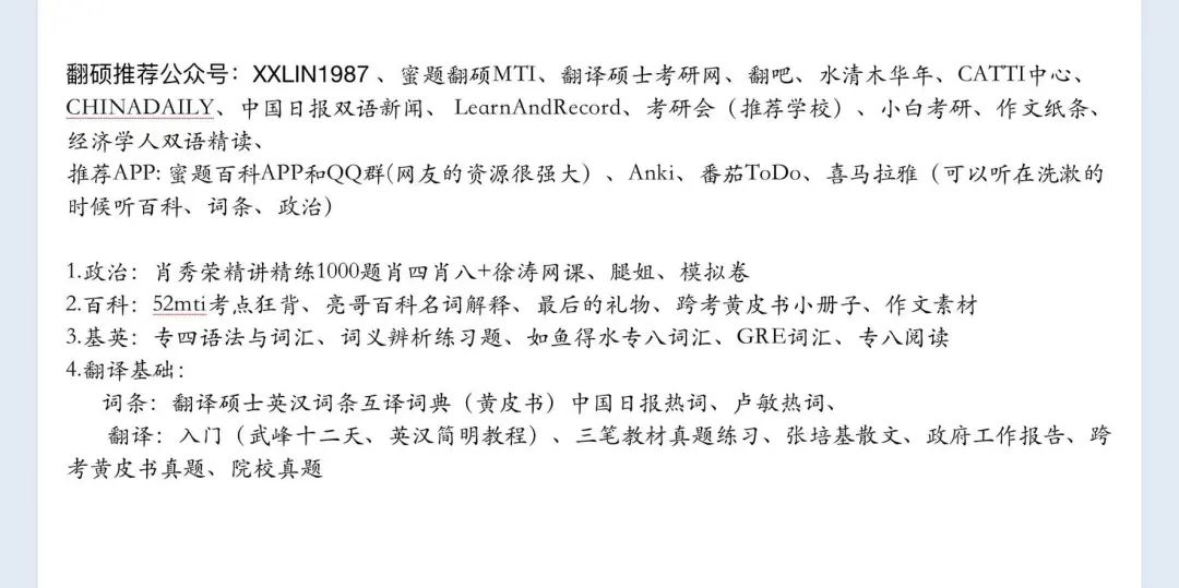 谢婷:我是自学的,没有报考研机构课程。因为网上也有很多经验贴,各种考试资料也能在网上找到。我觉得这个应该看个人选择,有些考研机构还是比较负责的,但也有很多考研机构找的老师也是刚刚上岸的学长学姐,大家在报课程的时候要自己分辨清楚。