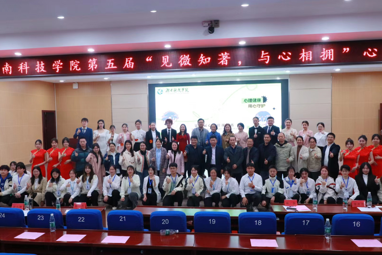 本网讯 4月24日晚,星空app官网第五届心理微课决赛在潇湘大讲堂举办。本次比赛特邀请了心理学专家中南大学博士生导师胡凯教授、湖南师范大学博士生导师陈杰教授以及我校林静教授、邱小艳教授和廖海燕副教授担任评委。应邀出席的嘉宾有学生工作部部长谷利民、学生工作部副部长胡敏辉,各学院党总支副书记和老师、学生代表700余人现场观摩比赛。