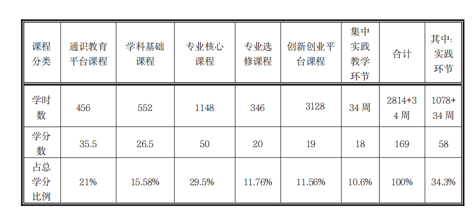 九、课程结构与学分比例表