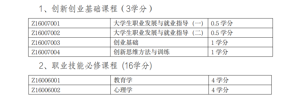 (五)创新创业教育平台课程(19学分)