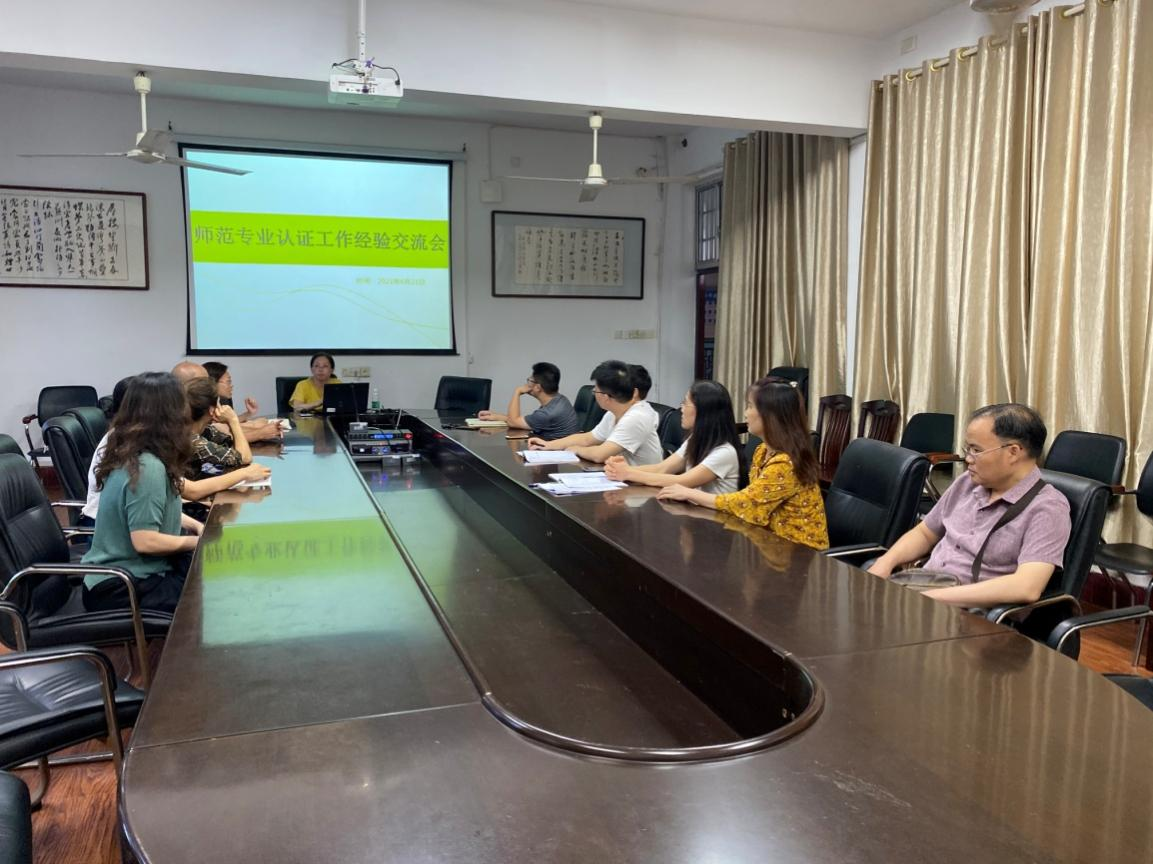 本网讯(通讯员 翟晓丽、谭浩亮)2021年6月21日下午3:00,外国语学院英语系全体老师就师范专业认证主题到文法学院学习取经。文法学院中文系主任黄丽作了题为“师范专业认证工作经验交流会”的精彩讲座。