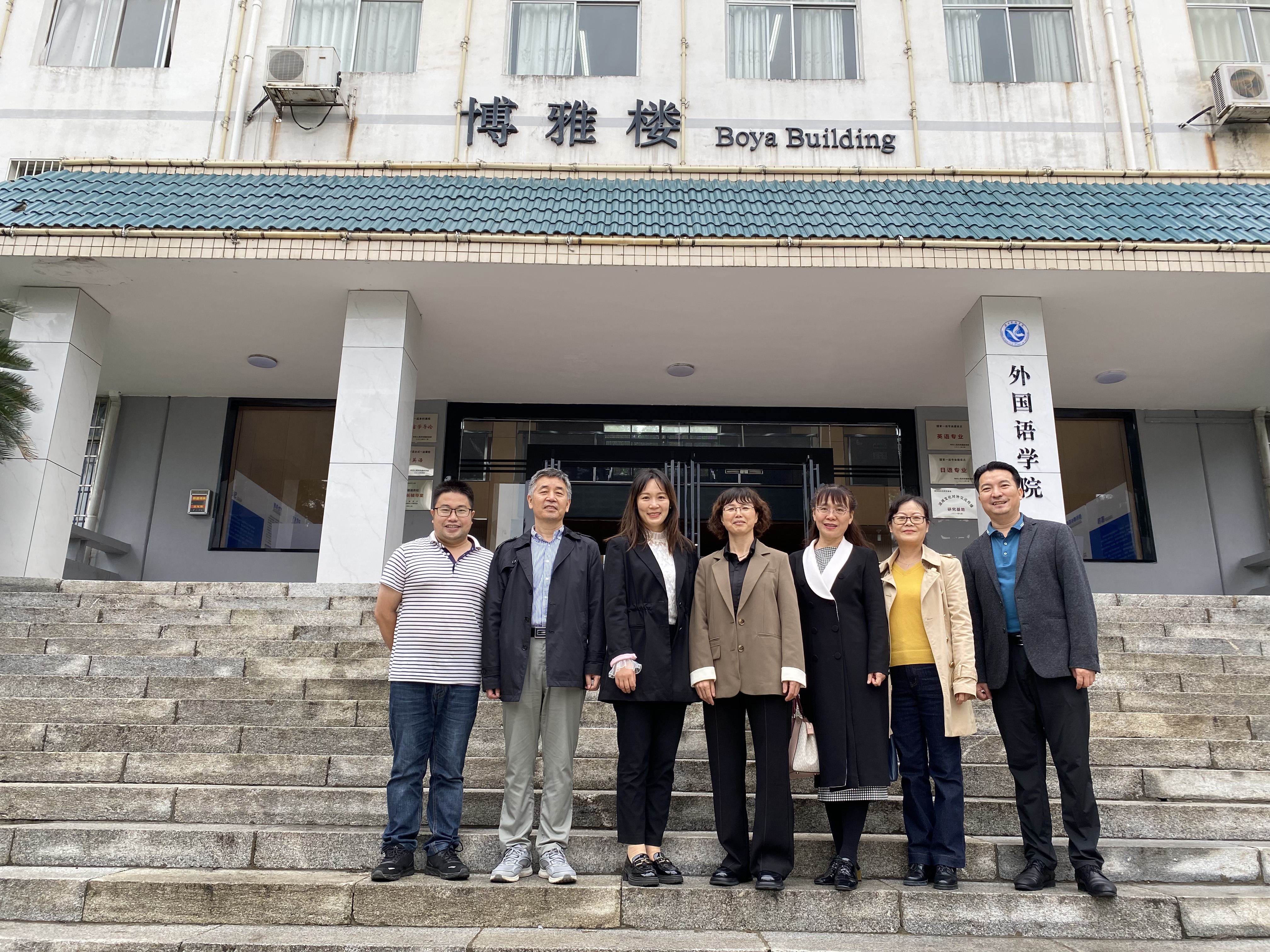 本网讯 为进一步加强校际友谊和交流,推进兄弟学院间深度合作,10月10日上午,长沙学院外国语学院党总支书记刘秋菊、刘芬教授、杨红教授、党总支副书记刘琼一行来我院调研交流。我院党总支书记唐君、党总支副书记罗晶、副院长何建军、黄昊文参加交流座谈会。