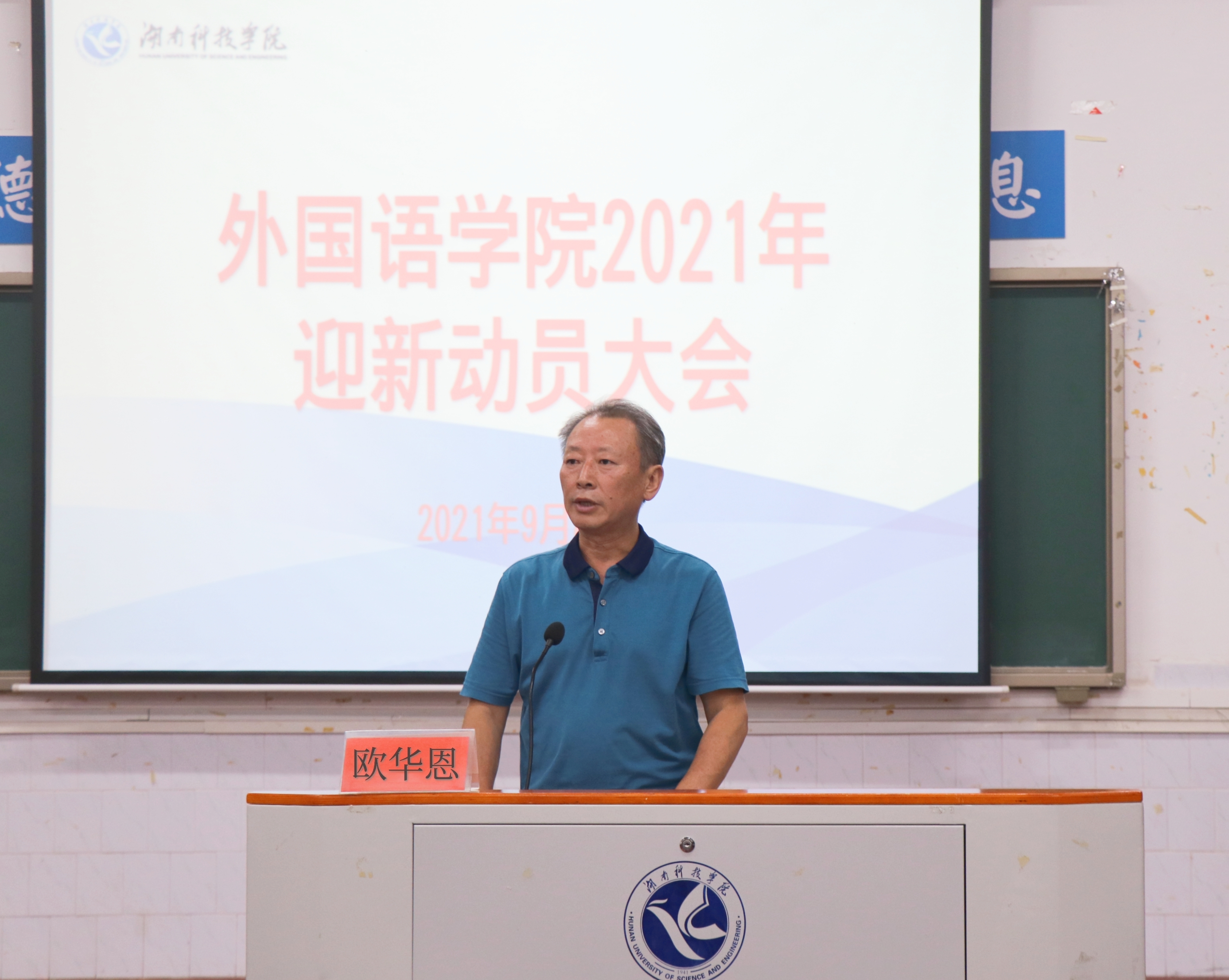接着,院长欧华恩对全体学生干部及志愿者的积极配合表示感谢。他讲到,志愿者应以饱满的热情,全心全意地投入到工作中。他还强调了人身、财产安全及个人隐私的重要性。此外,他希望全体学生干部及志愿者体现出外国语学院优良的精神面貌,展示出外院的风采,向新生传递正能量。