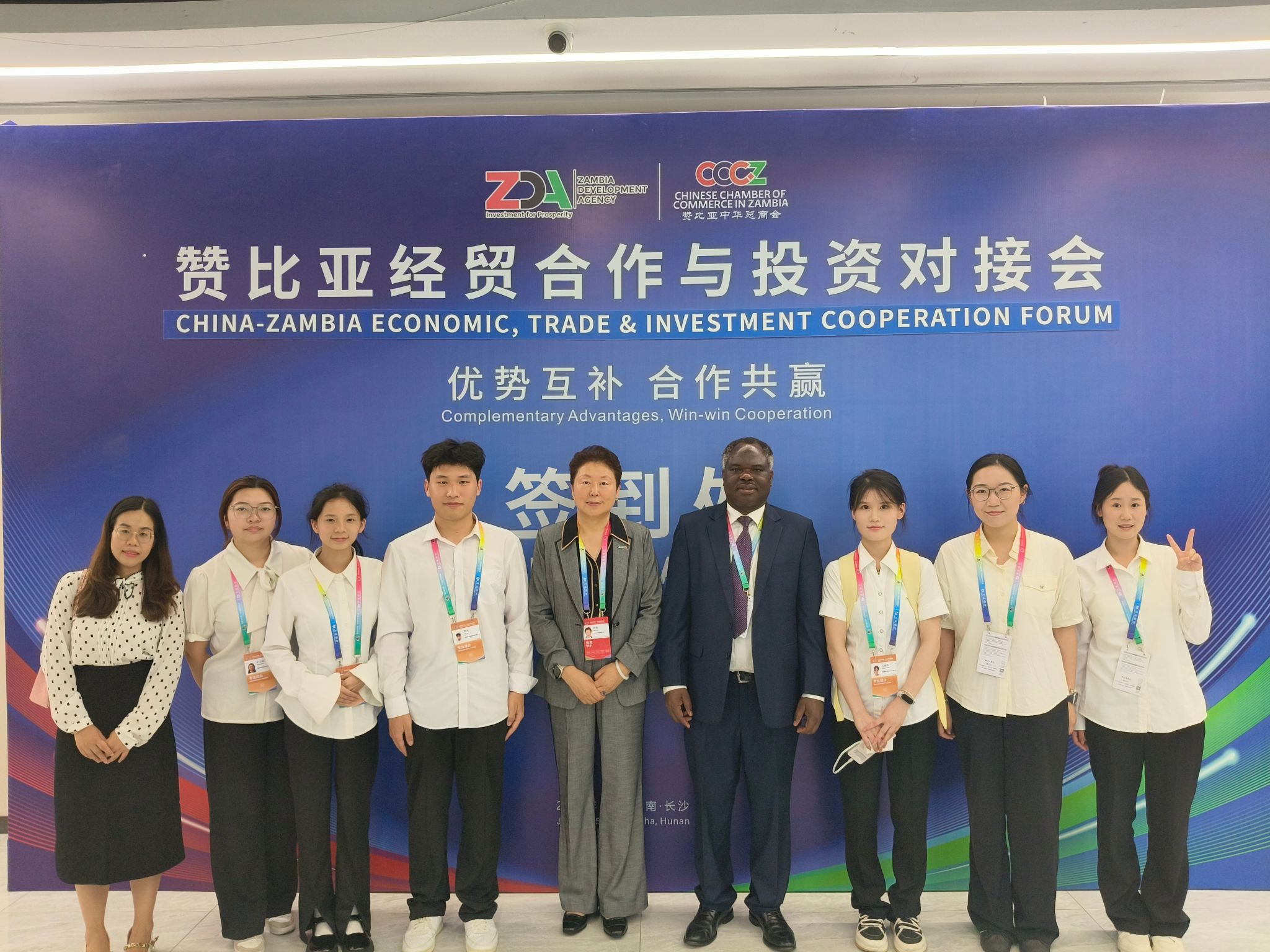 (通讯员 黄雅丽)6月12日至13日,星空app官网外国语学院19名师生组成的专业团队,深度服务“湘商-中非经贸促进专场对接会”“赞比亚经贸合作与投资对接会”等会议,以卓越的语言能力和跨文化服务水准赢得中外嘉宾高度赞誉,成为深化中非交流的“关键纽带”。