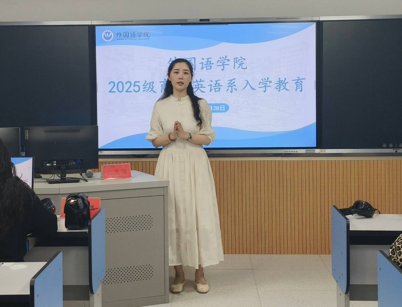 通讯员 蔡卓9月28日,外国语学院于博雅楼东三举办新生见面会暨专业教育会,旨在引导2025级新生深化专业认知,锚定学术航向,开启充实的大学生涯。学院领导、各系主任、辅导员、新生班主任及全体新生参加会议会议由学院党总支副书记罗晶主持。
