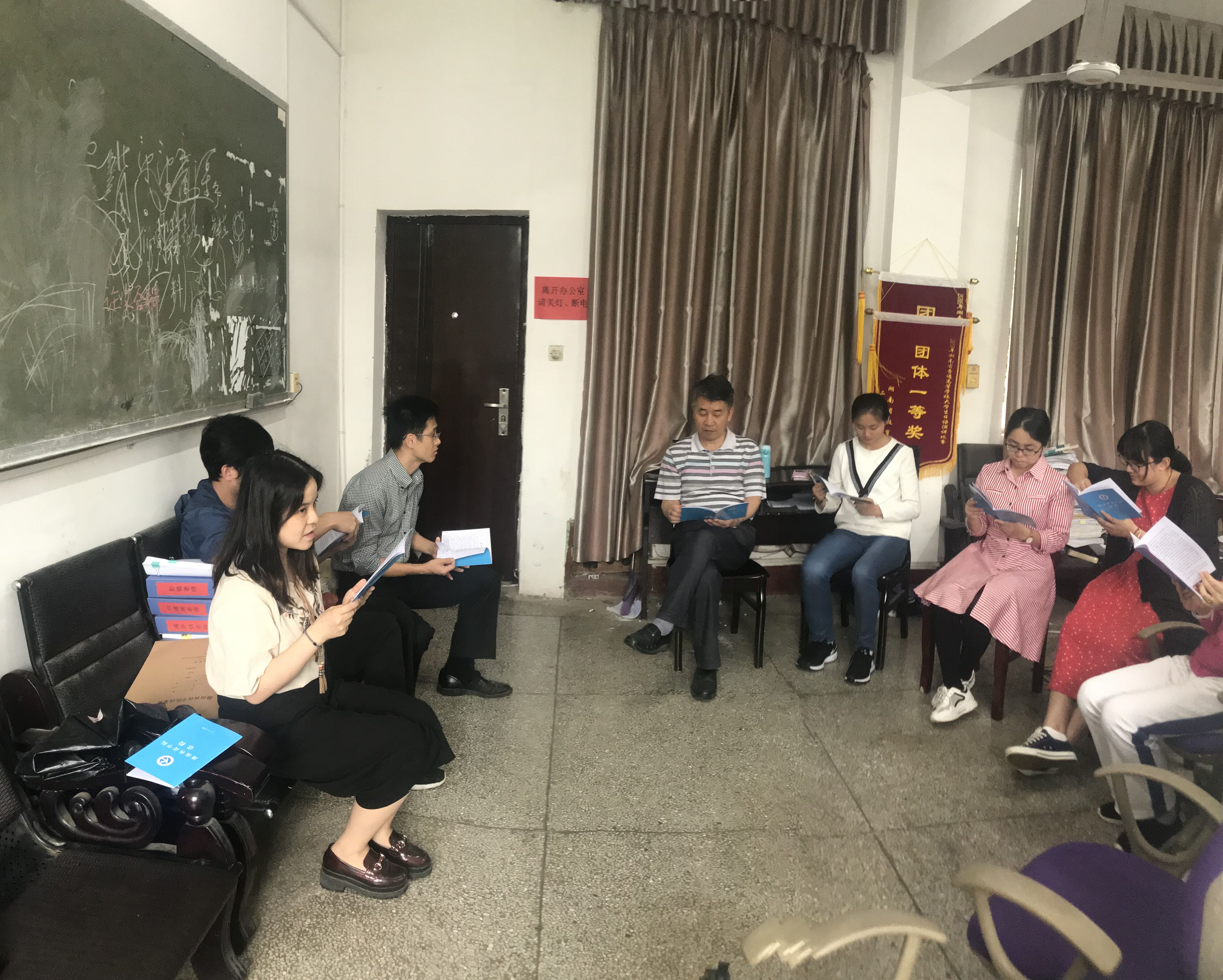 2018年6月5日下午,英语系全体教师在博雅楼202办公室、公共英语教学部在博雅楼304室、日语系在博雅楼205室分别集中学习了《星空app官网章程》。会上,大家认真学习《章程》内容,并就学习心得进行交流。