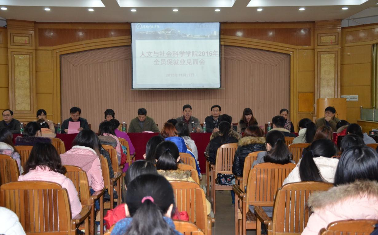 本网讯(记者 袁玲玲 杨慧荣 吴艾芝 沈博雅)为了推进我校就业工作,指导和帮助毕业生就业,11月27日,人文与社会科学学院在明德楼举行“2016年全员促就业见面会”。
