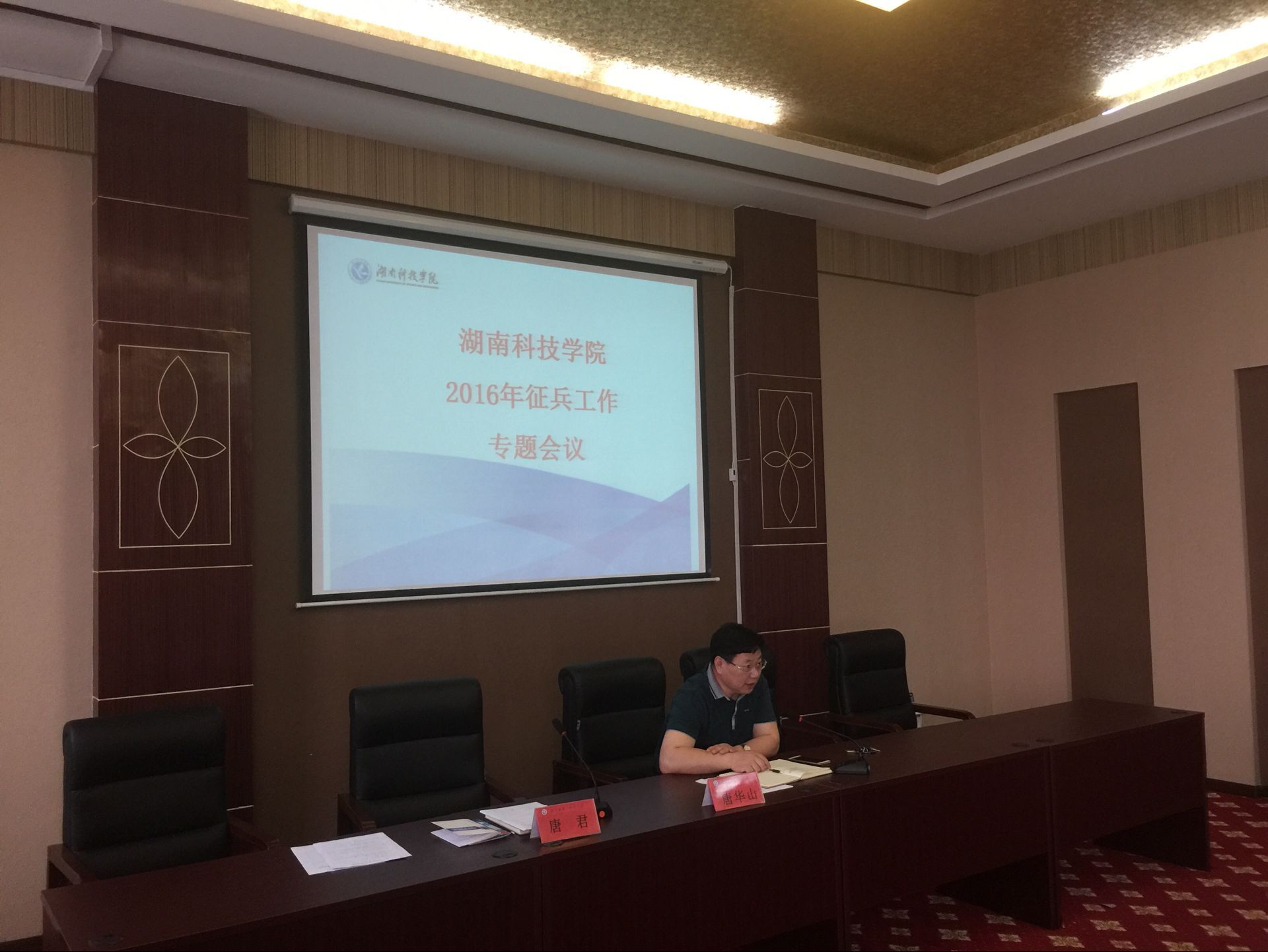 会上,唐君对大学生参军入伍的相关政策、要求以及时间节点等方面进行了布置和安排。唐华山就2016年征兵工作对各学院提出了三点要求:一是要高度重视,做到思想上和认识上的高度统一;二是要采取得力措施,有针对性地开展工作,重点把控毕业生应征入伍工作;三是要保证顺利完成任务,把征兵工作当作是一项政治性任务。唐君部长根据相关文件要求,对2016年征兵工作做出了具体安排,还对大学生入伍的相关政策、退伍学生升学复学手续、退伍军人就业方向等事项进行了详细解说。
