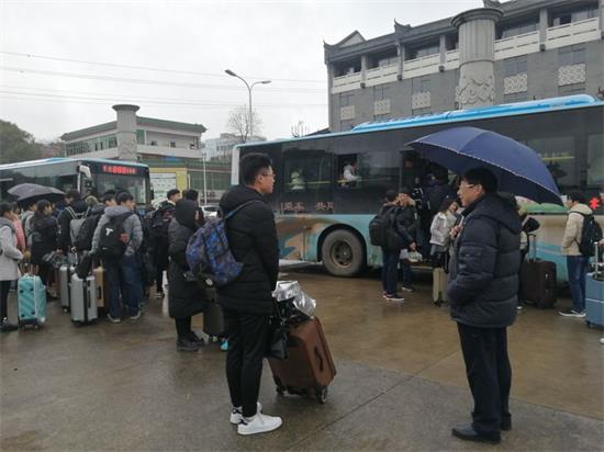 本网讯(胡敏辉邓强左璐瑶)寒假来临,春节将至,星空app官网党委高度重视学生安全离校工作。2018年1月20日至1月24日,特租用公交巴士免费送学生至冷水滩火车站、汽车站,情暖学子回家路。