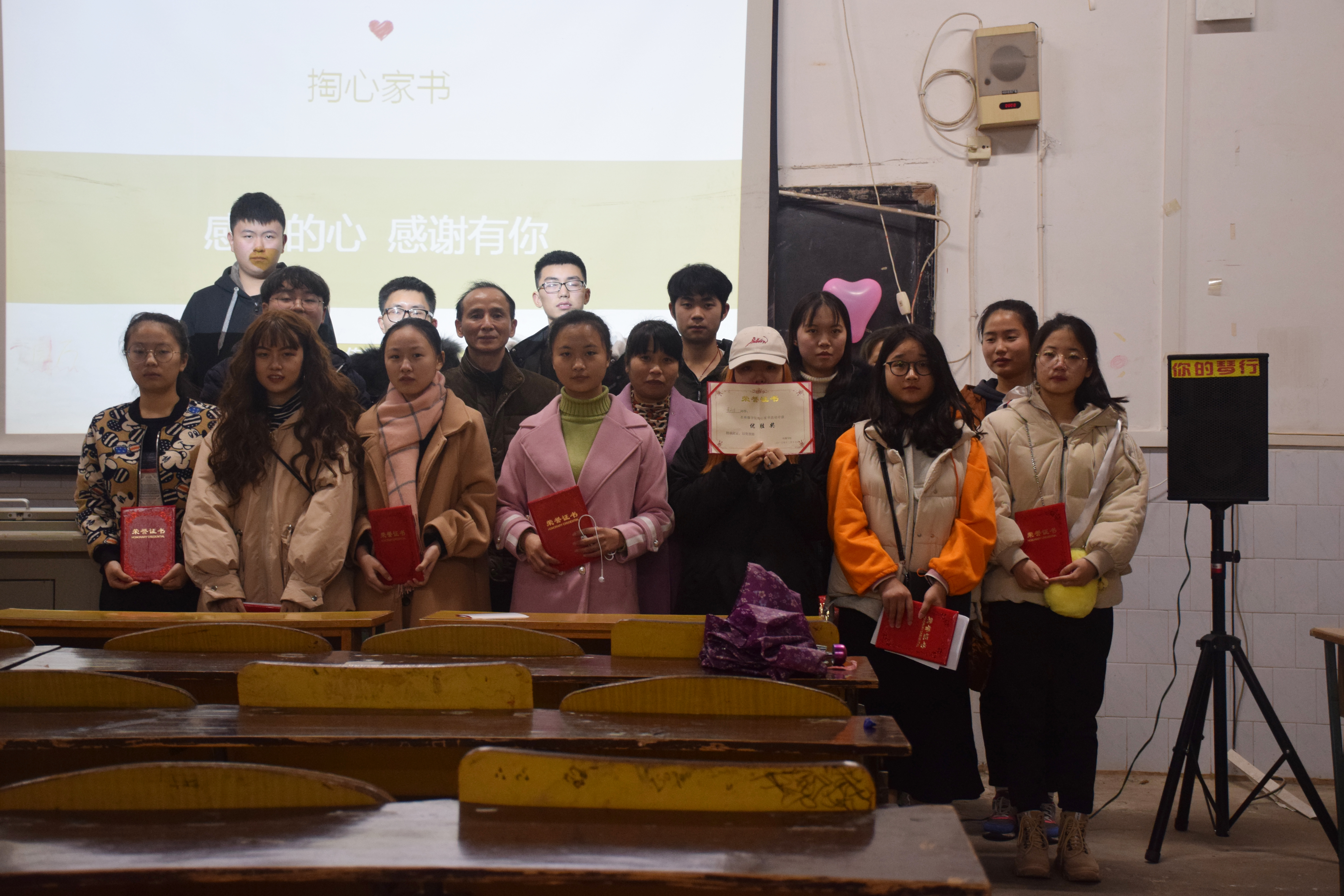 本网讯(通讯员覃小明 王金玉黄思悦)12月24日,传媒学院第三届“掏心家书”获奖作品诵读体验活动及颁奖仪式在博雅楼西三报告厅举行。传媒学院党总支书记蒋诗堂、副书记唐华丽、分团委书记刘慧等老师出席,2018级全体同学参加了此次活动。