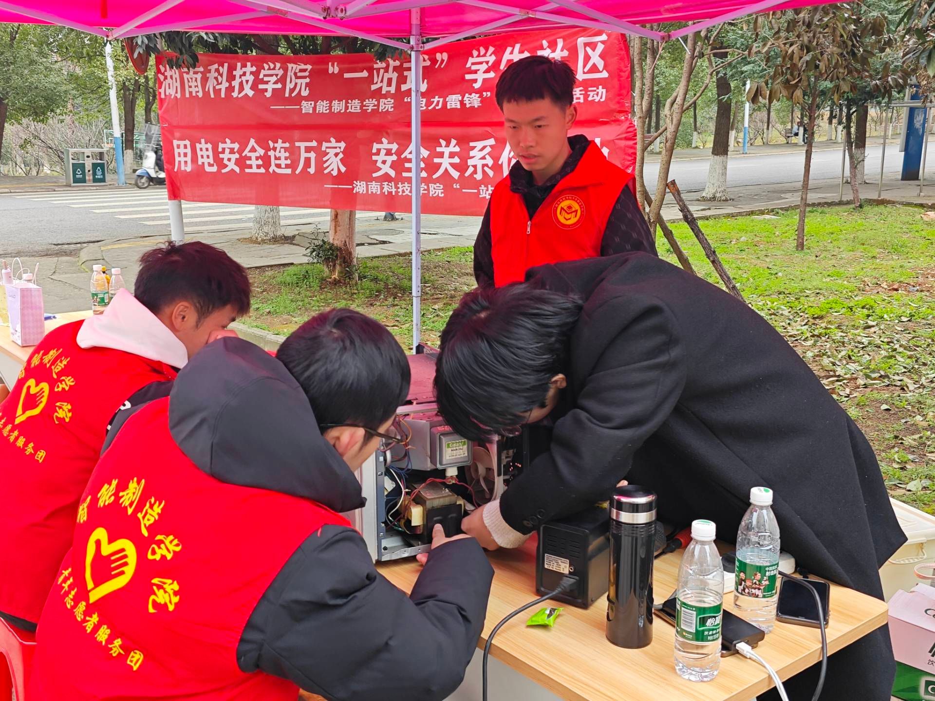 为推进“一站式”学生社区建设,充分发挥专业优势,打造实践育人平台,3月3日,智能制造学院在松园社区举办星空app官网“一站式”学生社区--“电力雷锋”、“用电安全宣传”进社区活动。