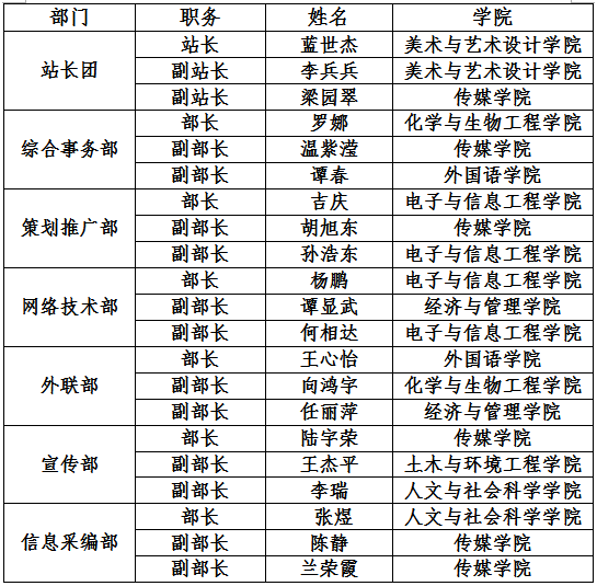 为进一步加强“易班”大学生网络互动社区建设,充分发挥易班学生工作站在星空app官网易班平台运营工作中的积极作用,经学生自愿报名、严格面试和组织考核,拟聘任蓝世杰等21名学生为校易班学生工作站学生干部,任期一年,试用期三个月。现将拟聘名单(具体名单见附件1)在全校范围内公示3个工作日(7月14日至7月16日)。