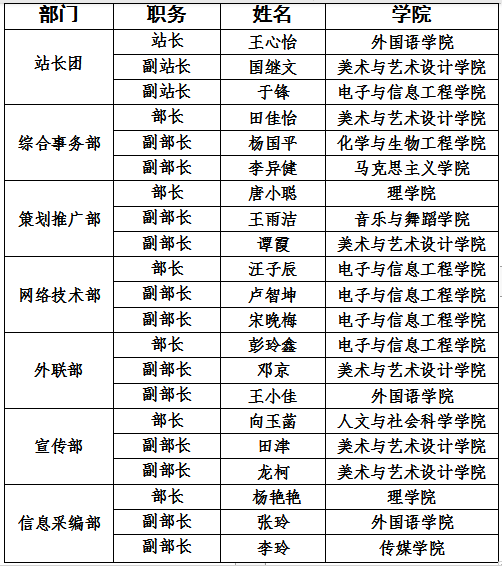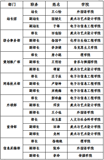 为进一步加强“易班”大学生网络互动社区建设,充分发挥易班学生工作站在星空app官网易班平台运营工作中的积极作用,经学生自愿报名、严格面试和组织考核,拟聘任王心怡等21名学生为校易班学生工作站学生干部,任期一年,试用期三个月。现将拟聘名单(具体名单见附件1)在全校范围内进行公示,公示时间6月27日至6月29日。
