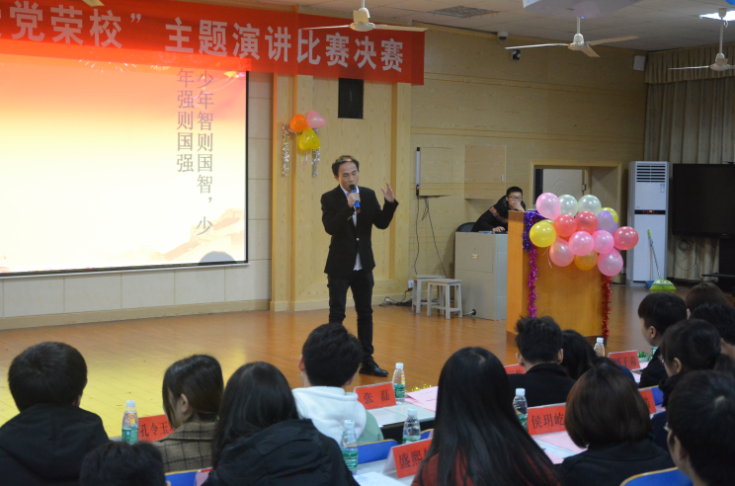 陈泽顺在总结点评中指出,此次主题演讲不仅仅是锻炼演讲能力,更重要的是发扬“爱党荣校”的精神。同学们要树立集体荣誉感、认同感、归属感,将爱党荣校的热情转化为实际行动,为学校的发展添砖加瓦。