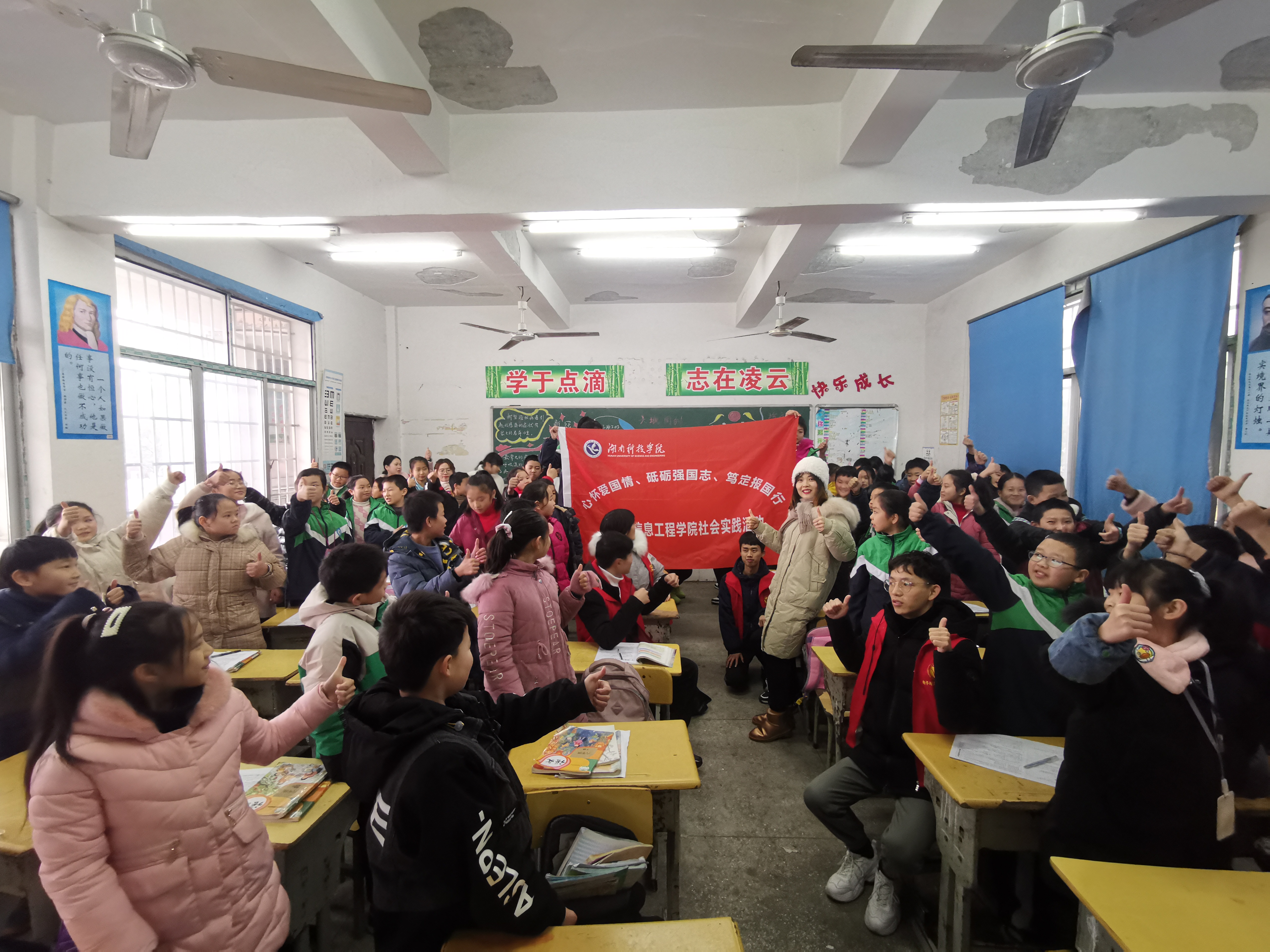为了让小学生亲身感受信息技术带来的魅力,培养小学生了解、感知和探索信息技术的兴趣。2020年12月15日,星空app官网电子与信息工程学院科普实践团队前往零陵区黄古山小学,开展以“心怀爱国情,砥砺强国志,笃定报国行”为主题的社会实践活动。
