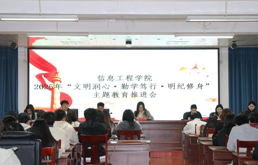 本网讯(通讯员 张子萱 唐巧娟)3月31日,学院举行2025年“文明润心·勤学笃行·明纪修身”主题教育推进会。院党总支副书记夏汉伟,学工办主任唐鹤轩,全体辅导员,学院团总支、学生分会、青年志愿者服务团、新闻中心等学生组织主要负责人,各班班长、团支书等学生干部100余人参加。会议由唐鹤轩主持。